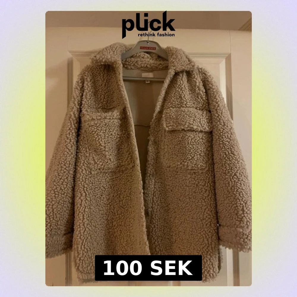 Supermysig beige teddyjacka från H&M med två stora bröstfickor och knäppning framtill. Jackan har en oversized passform och är gjord i fluffigt teddy-material som håller dig varm. Perfekt för lager-på-lager och en chill streetstyle-look.