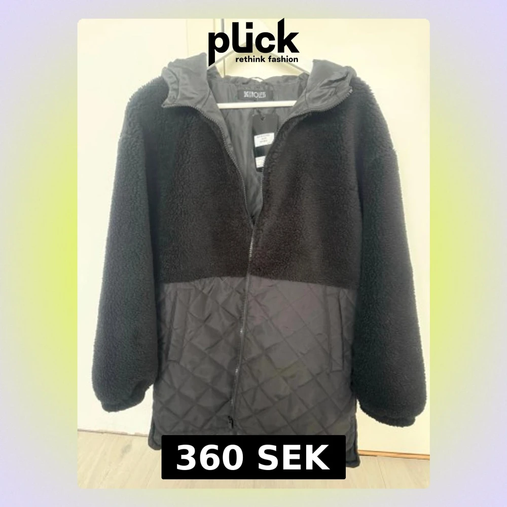 Säljer en svart teddyjacka från Noisy May med huva och dragkedja. Överdel i mjukt teddy-material och nederdel i quiltat tyg. Jackan har en oversized passform och är perfekt för kalla dagar. Enkel och stilren design som passar till det mesta.