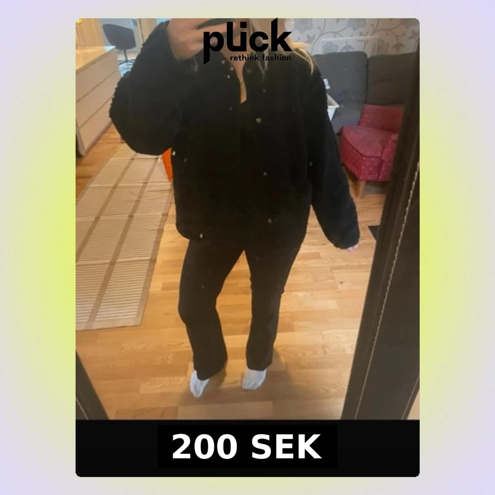 Mysig svart teddyjacka med oversized passform och rund hals. Jackan har tryckknappar framtill och är gjord i fluffigt teddy-material som ger en trendig look. Perfekt för dig som vill ha en stilren och enkel jacka till hösten eller vintern. En knapp på fickan har lossnat.