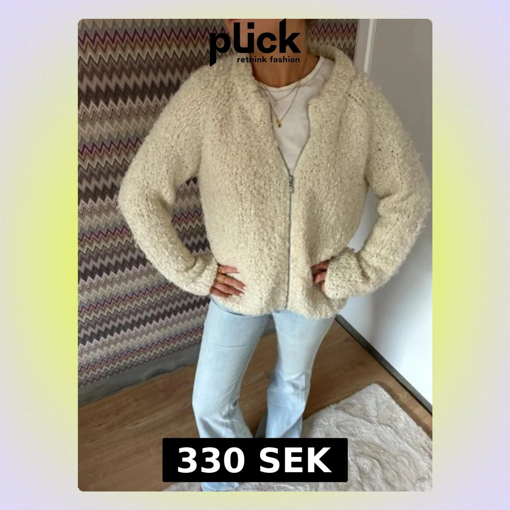 Mysig krämvit teddykofta med dragkedja framtill och rundad hals. Jackan har en fluffig, fårskinnsinspirerad struktur och långa ärmar. Perfekt för dig som gillar en avslappnad och trendig look. Passar till jeans och sneakers för en chill stil. Passar som en M