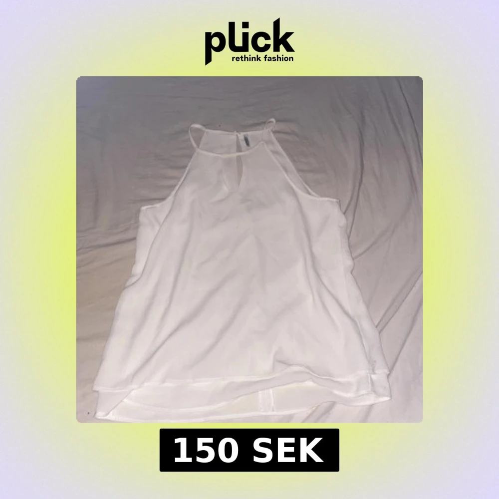 Säljer en stilren vit linnetopp med smala axelband och en liten nyckelhålsöppning framtill. Toppen är ärmlös och har en luftig passform, perfekt för varma dagar. Enkel och fräsch design som är lätt att matcha med olika outfits.