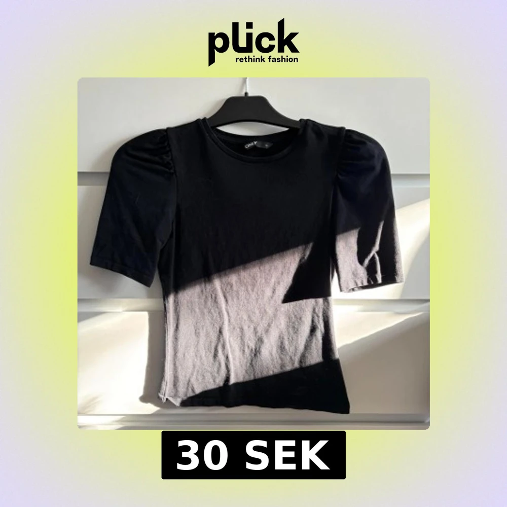 Säljer en stilren svart topp från ONLY i storlek XS. Toppen har korta ärmar med en lätt puffig design och en rund halsringning. Hör av dig vid intresse 🤗