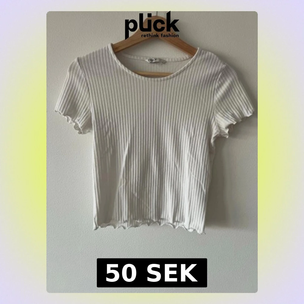 Säljer en vit ribbad topp från ONLY med korta ärmar och croppad passform. Toppen har en rund halsringning och vågig kant längst ner och vid ärmsluten. Perfekt till jeans eller kjol för en enkel och fräsch look.