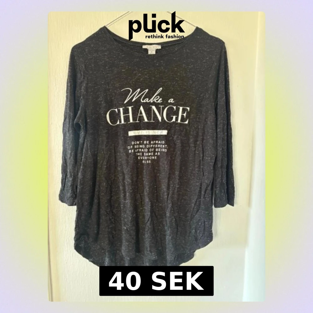 Cool svart trekvartsarm topp från amisu med vitt texttryck på bröstet där det står 'Make a Change'. Toppen har rund halsringning och är gjord i mjukt bomullsmaterial. Perfekt till jeans eller kjol för en avslappnad look.