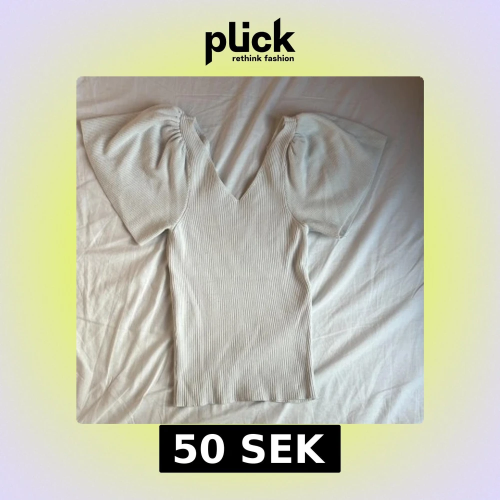 Supersnygg ribbad topp i färgen eggnog från ONLY Petite. Toppen har v-ringning, korta puffärmar och en figurnära passform. Perfekt för dig som gillar en stilren look med lite extra volym på axlarna. Materialet är mjukt och stretchigt för skön känsla. Färgen på tröjan är lite urtvättad och banden man ska knyta i ryggen finns inte kvar, Nypris 329 kr.