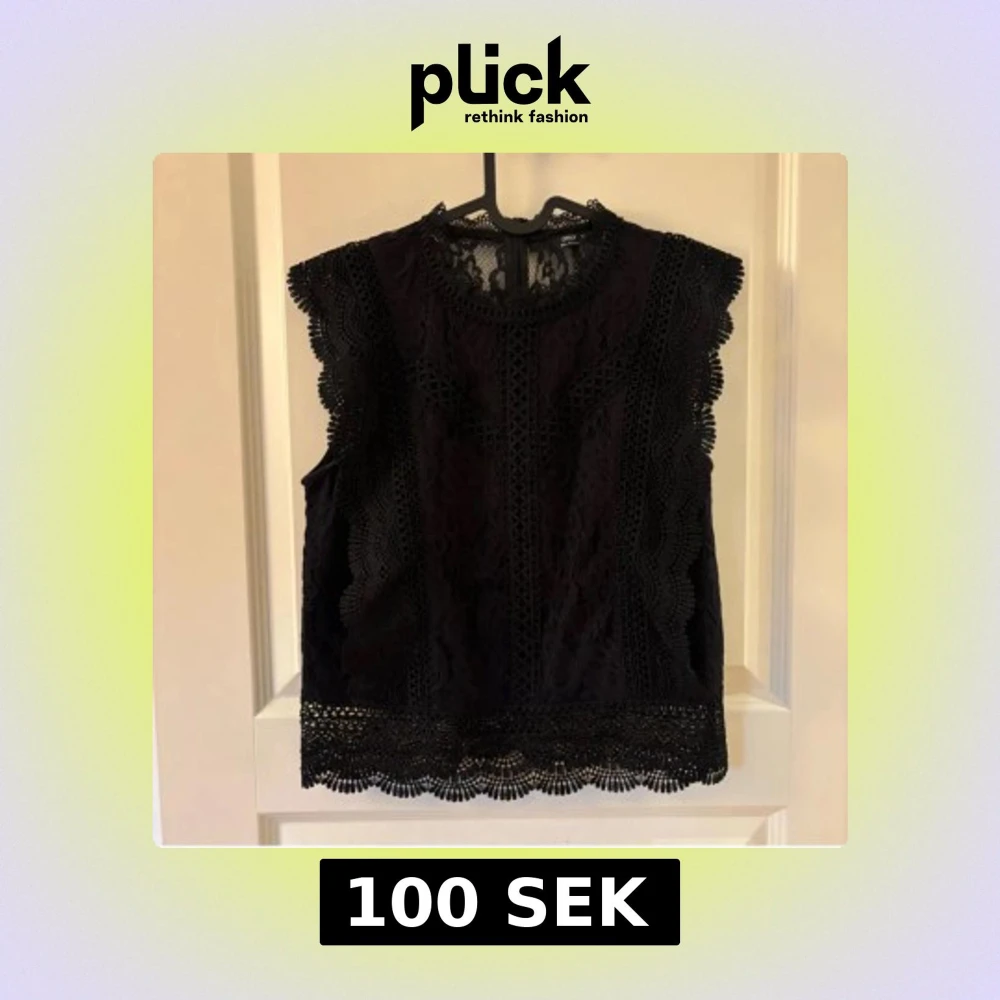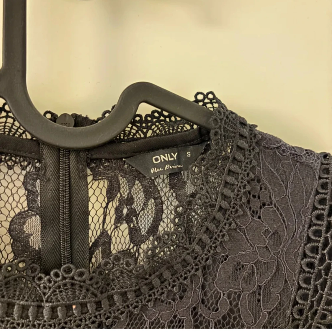 Supersnygg svart blus från ONLY med spetsdetaljer och vackert mönstrad mesh. Ärmlös modell med volangkant längs axlar och nederkant. Perfekt för dig som gillar romantiska och detaljerade plagg.