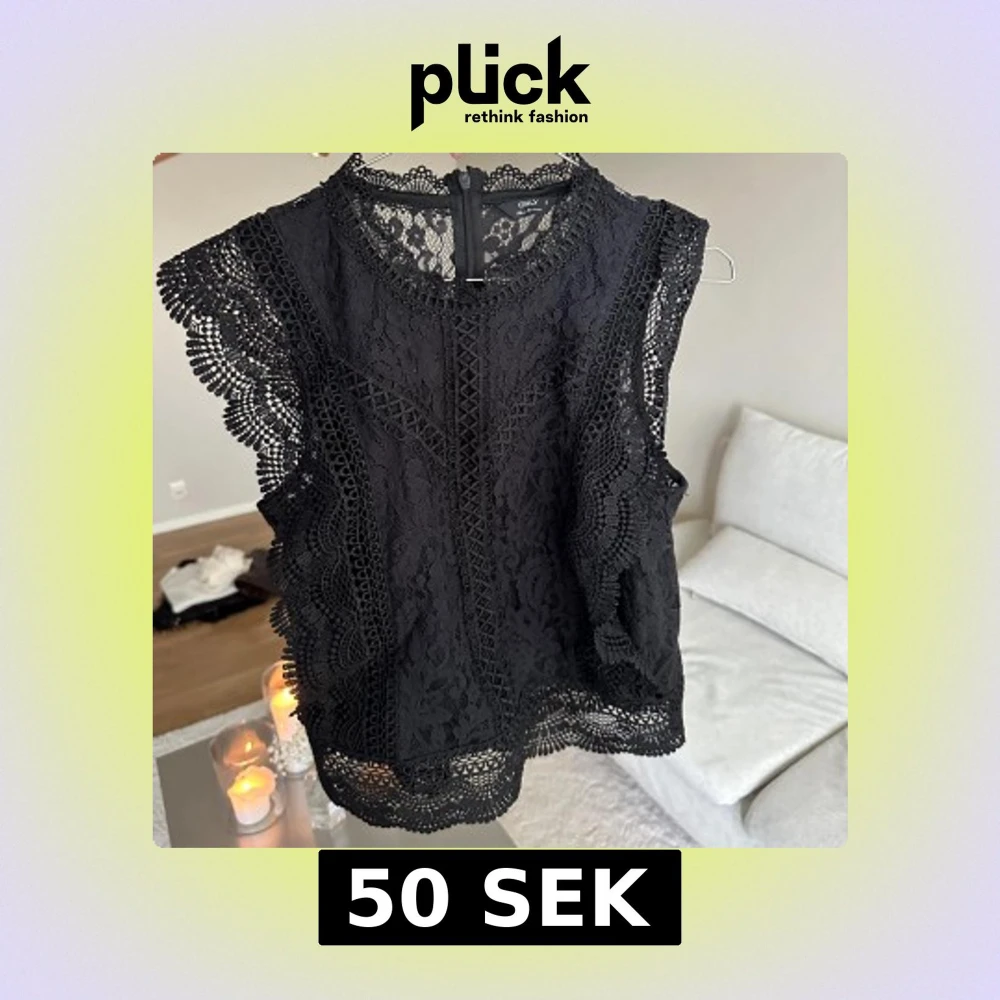Supersnygg svart blus från ONLY med detaljerad spets och volangkantade ärmhål. Blusen är ärmlös och har en rund halsringning. 💕