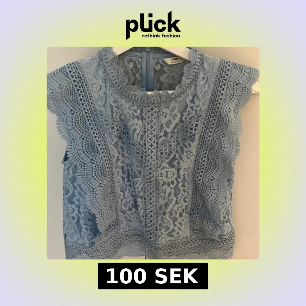 Supersöt ljusblå blus från ONLY i spets med blommigt mönster och fina detaljer längs kanterna. Ärmlös modell med rund halsringning och dragkedja i ryggen. Perfekt för dig som gillar romantisk och feminin stil.