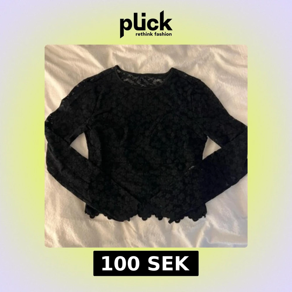 Säljer en svart blus i spets med blommigt mönster och lång ärm. Toppen har en rund halsringning och är lätt transparent med fina detaljer längs nederkanten. Perfekt för dig som gillar en feminin och edgy stil. Använd fåtal gånger