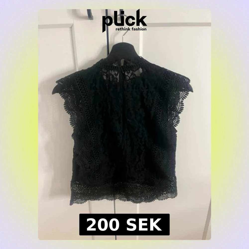 Säljer en svart blus från only med spetsdetaljer och rund hals. Säljer pga att jag inte hafft en stor användning av den, använt 2 gånger.