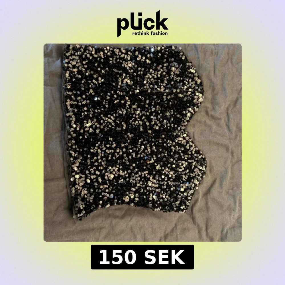 Glittrig svart tubtopp från ONLY, täckt med massor av svarta paljetter. Storlek small, tight passform, perfekt för festliga tillfällen! Endast använd en gång.