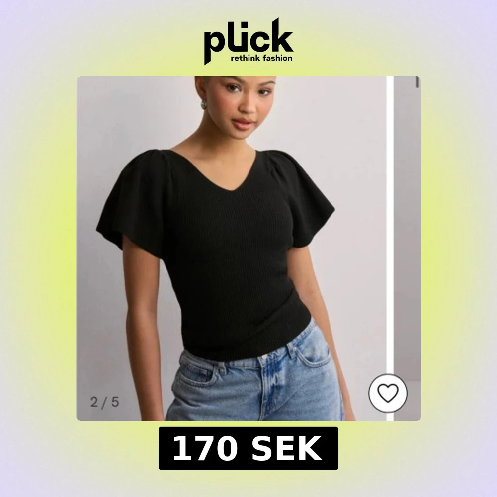 Säljer en svart ribbad topp med v-ringning och korta puffärmar från only. Toppen har en snygg detalj med rosett i ryggen. Använd fåtal gånger, känns som ny utan några defekter. Skriv för fler frågor🩷