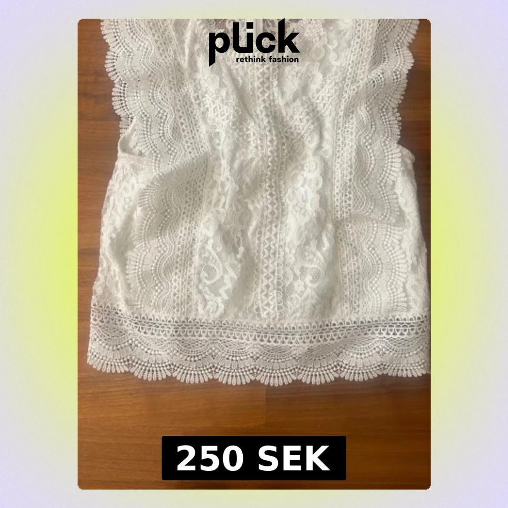 Supersöt vit blus i spets med vackra volangdetaljer längs ärmhålen och nederkanten. Blusen har ett genomarbetat spetsmönster och rund halsringning. Perfekt för dig som gillar romantisk och feminin stil.