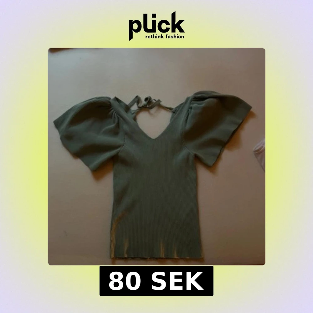 Säljer en ljusgrön ribbad topp från ONLY med stora puffärmar och v-ringning. Toppen har knytning i nacken och är tillverkad i ett mjukt, stretchigt material. Perfekt för dig som vill ha en trendig och bekväm look.