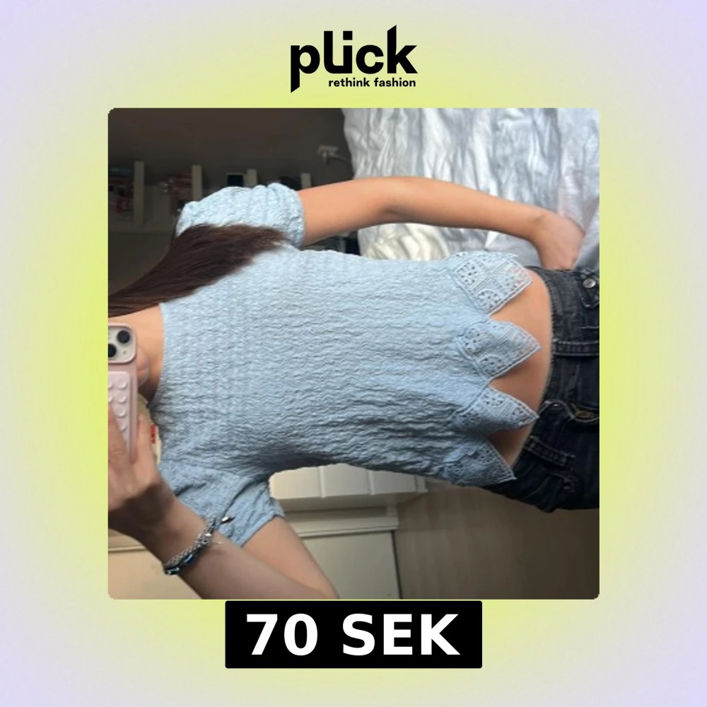 Supersöt ljusblå blus med puffiga korta ärmar och vågig struktur. Blusen har många detaljer vilket jag tycker är väldigt snyggt. Skriv för fler bilder eller eventuella frågor!!🩵🩵