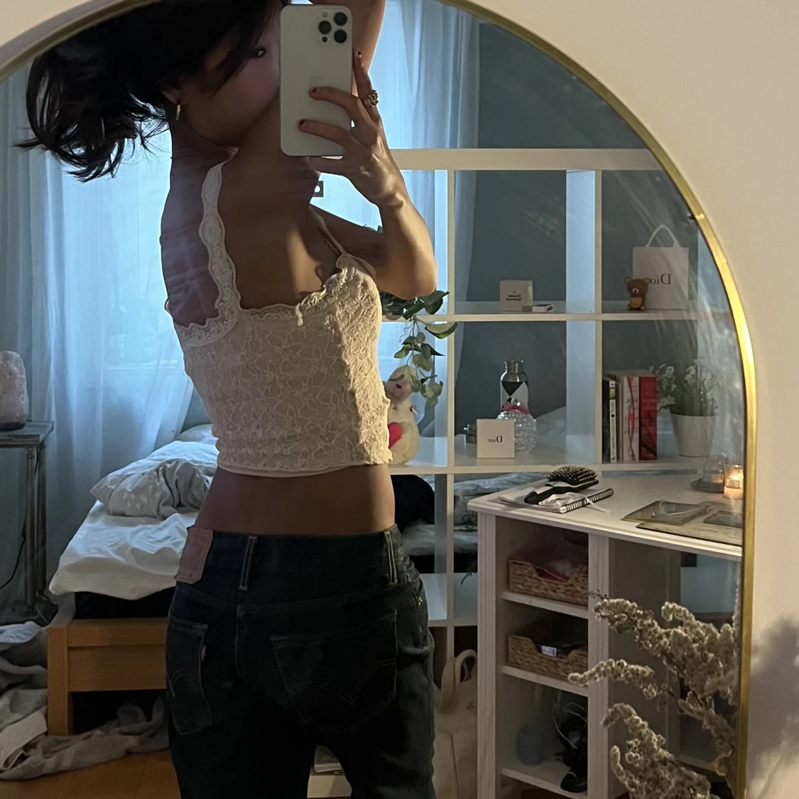 En jättefin och unik topp med massa spets samt en korsett-liknande from fast stretchig och inte alls tajt. 💓🥰