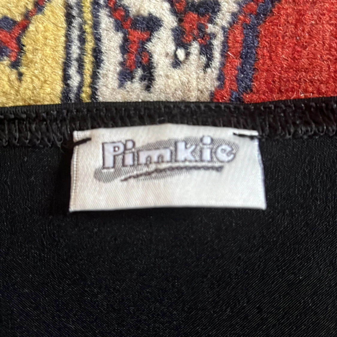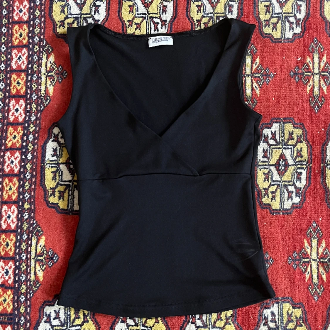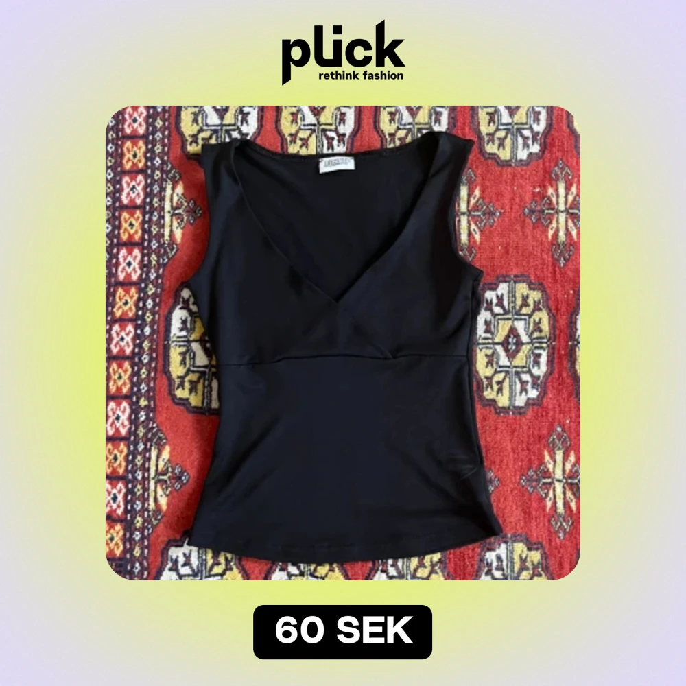 En svart topp från märket Pimkie. Står ingen storlek men skulle säga att det är en XS/S men materialet är väldigt stretchigt så passar en xs-m skulle jag säga :)