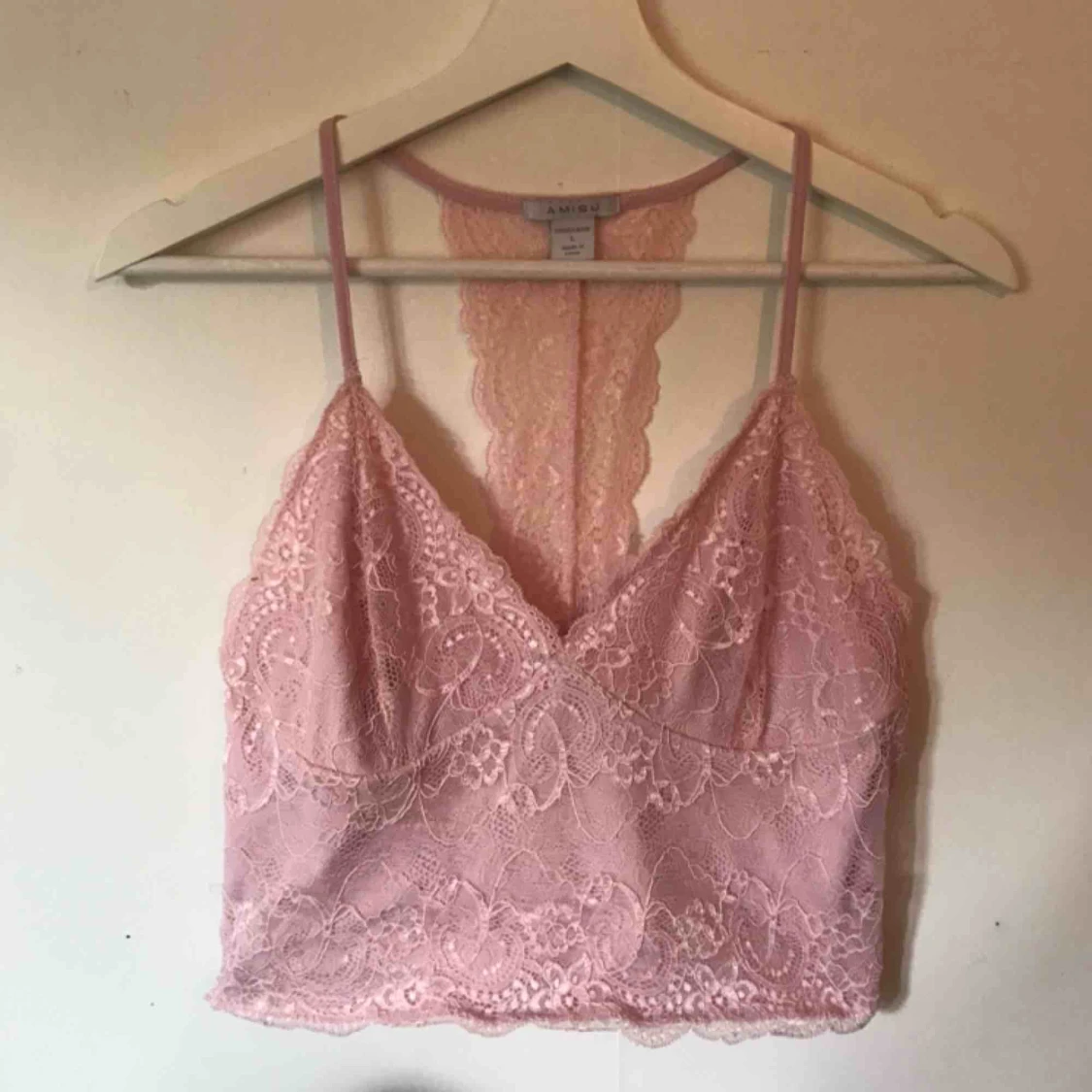 Ett jätte fint ljusrosa spets topp med fin rygg, men tyvärr för litet för mig. Passar även M. Rekommenderar att man inte har över D-kupa för då kan den bli lite liten. Kan mötas i Göteborg annars står köparen för frakten på 42kr💞