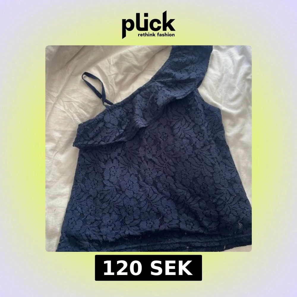Supersnygg marinblå topp från Abercrombie Kids med blommig spets och oneshoulder-design. Helt ny aldrig använt.