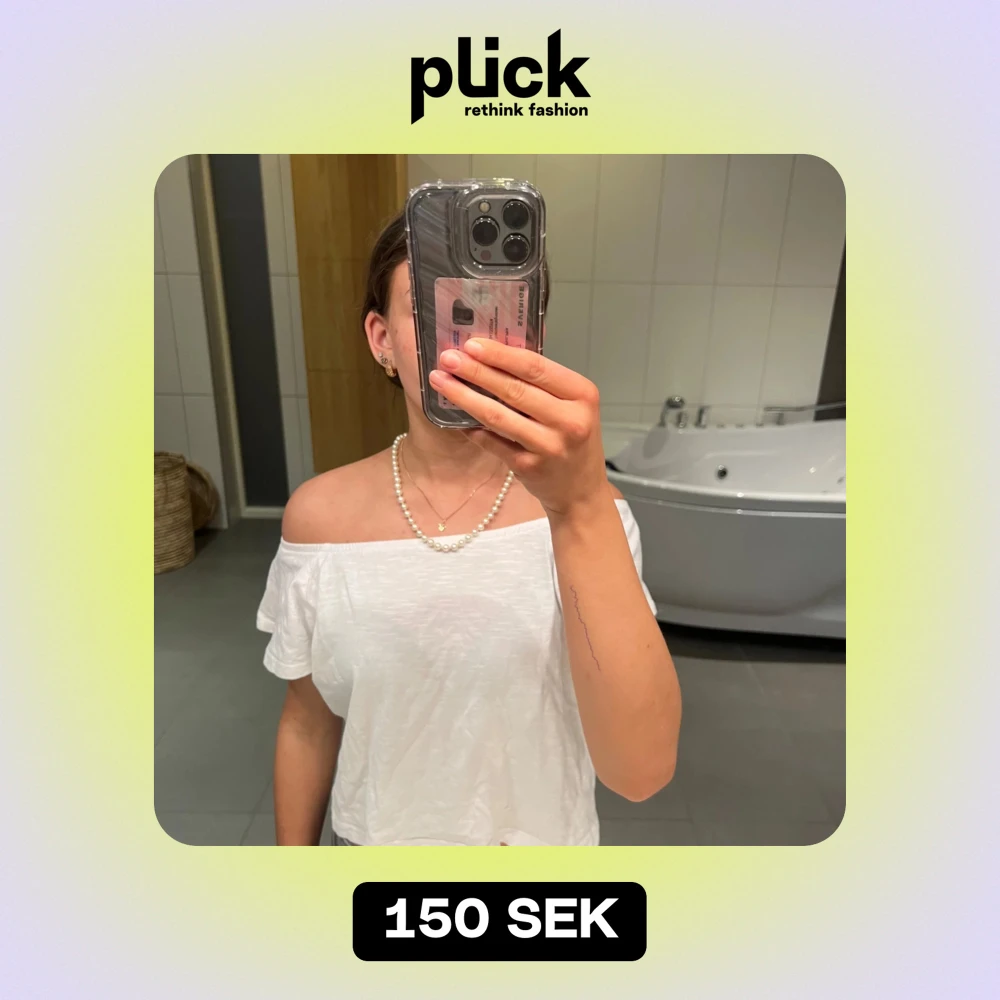 Säljer en superfin vit offshoulder topp med korta ärmar. Perfekt för sommardagar eller en festkväll. Toppen är i ett mjukt och bekvämt material som sitter skönt på kroppen. Passar bra till både jeans och kjol! Säljes då den inte passar löngre då den är i storlek 140 typ!