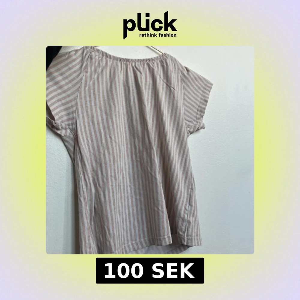 Söt blus från Etab med vertikala ljusrosa och vita ränder. Modellen har korta ärmar och en avslappnad passform med resår vid halsen. Perfekt för en chill och somrig look. Tillverkad i mjuk bomull som känns skön mot huden.