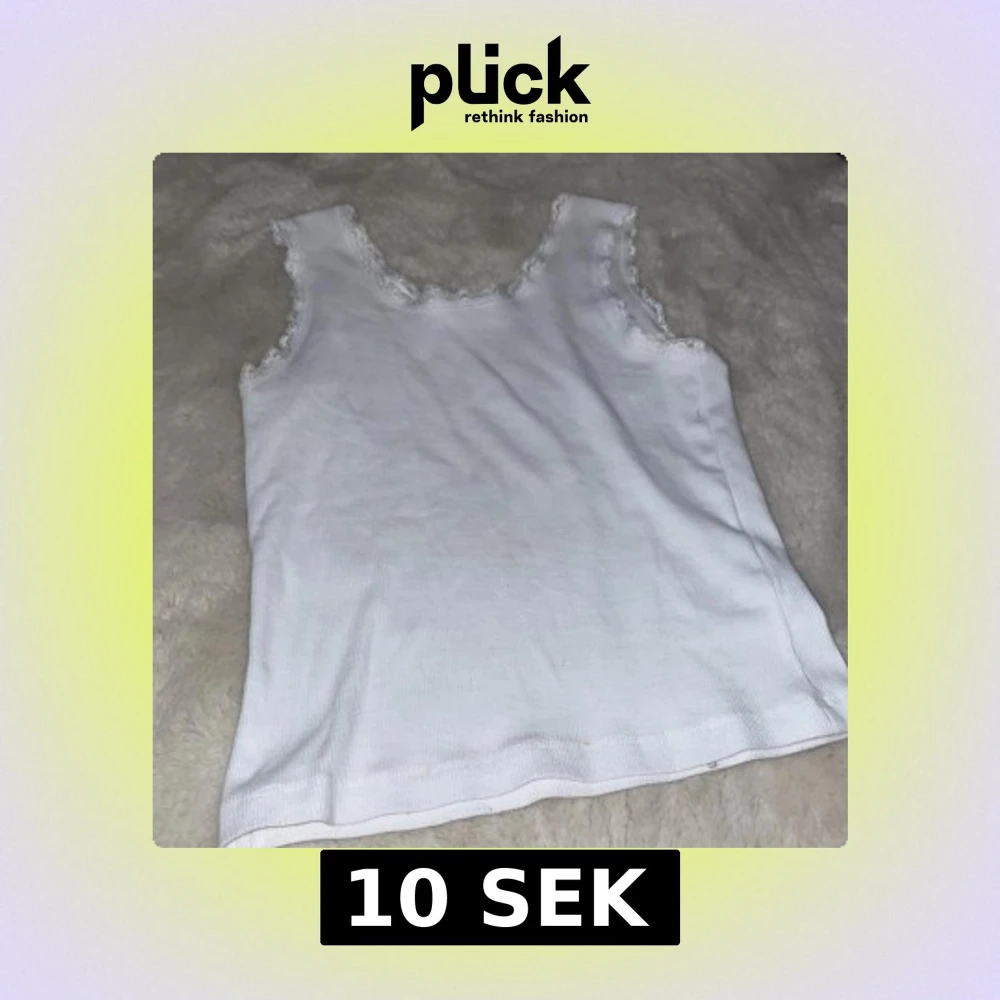 Säljer ett vitt linne från lager 157 med fina spetsdetaljer längs kanterna. Perfekt för varma dagar eller som ett basplagg i garderoben. Normal pris 50kr