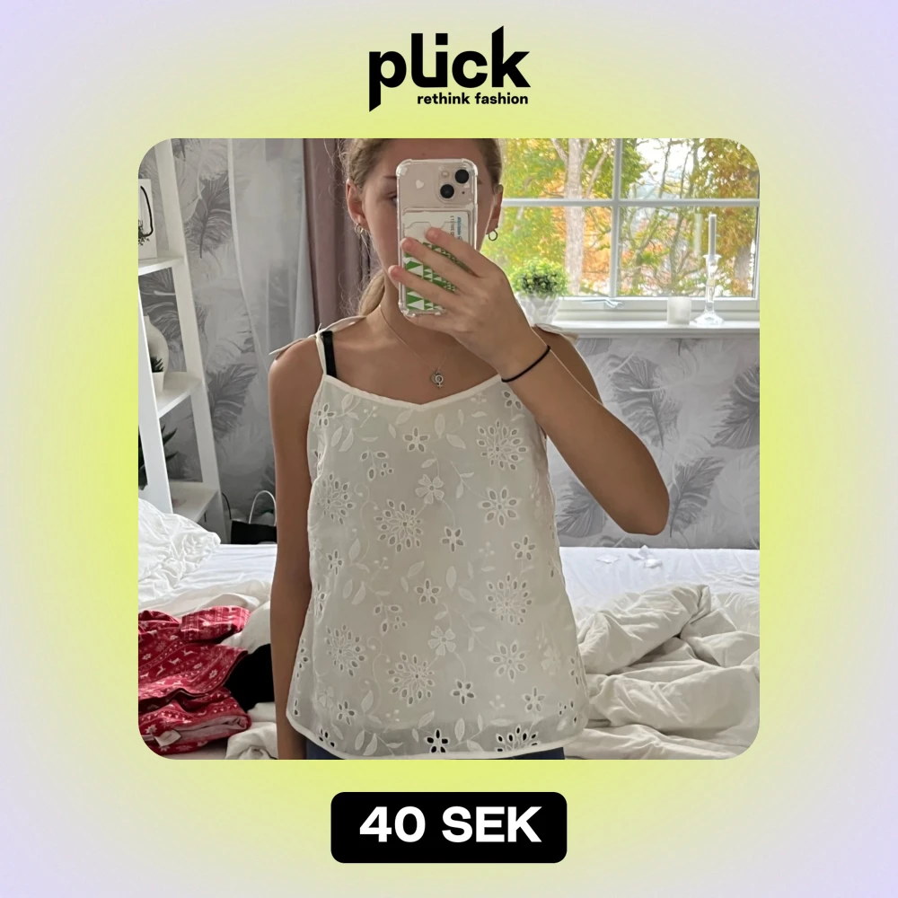 Säljer en superfin vit linne med broderade blommor. Den har söta rosetter på axelbanden. Perfekt för sommardagar eller en avslappnad vårlook. Materialet är lätt och luftigt, vilket gör den bekväm att bära hela dagen.