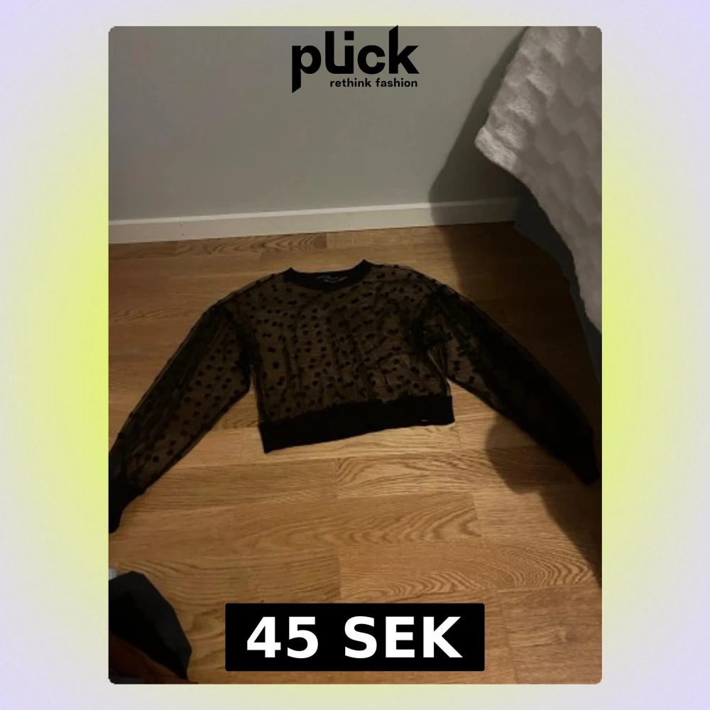 Trendig svart mesh topp med lång ärm och prickigt mönster. Croppad modell med ribbade muddar vid ärmslut och midja. Perfekt för att addera en edgy vibe till din outfit.