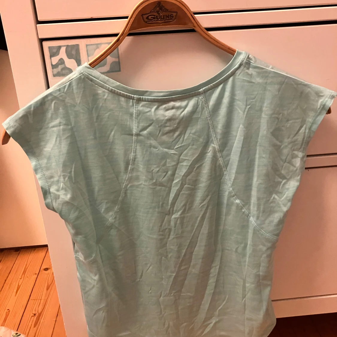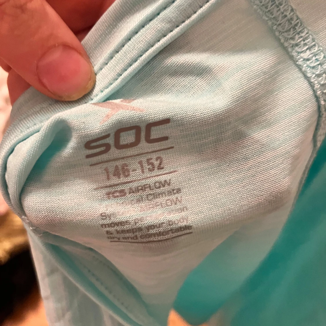 Säljer en ljusblå topp från SOC. Den är ärmlös och har en rund halsringning. Toppen är tillverkad i ett mjukt och bekvämt material.