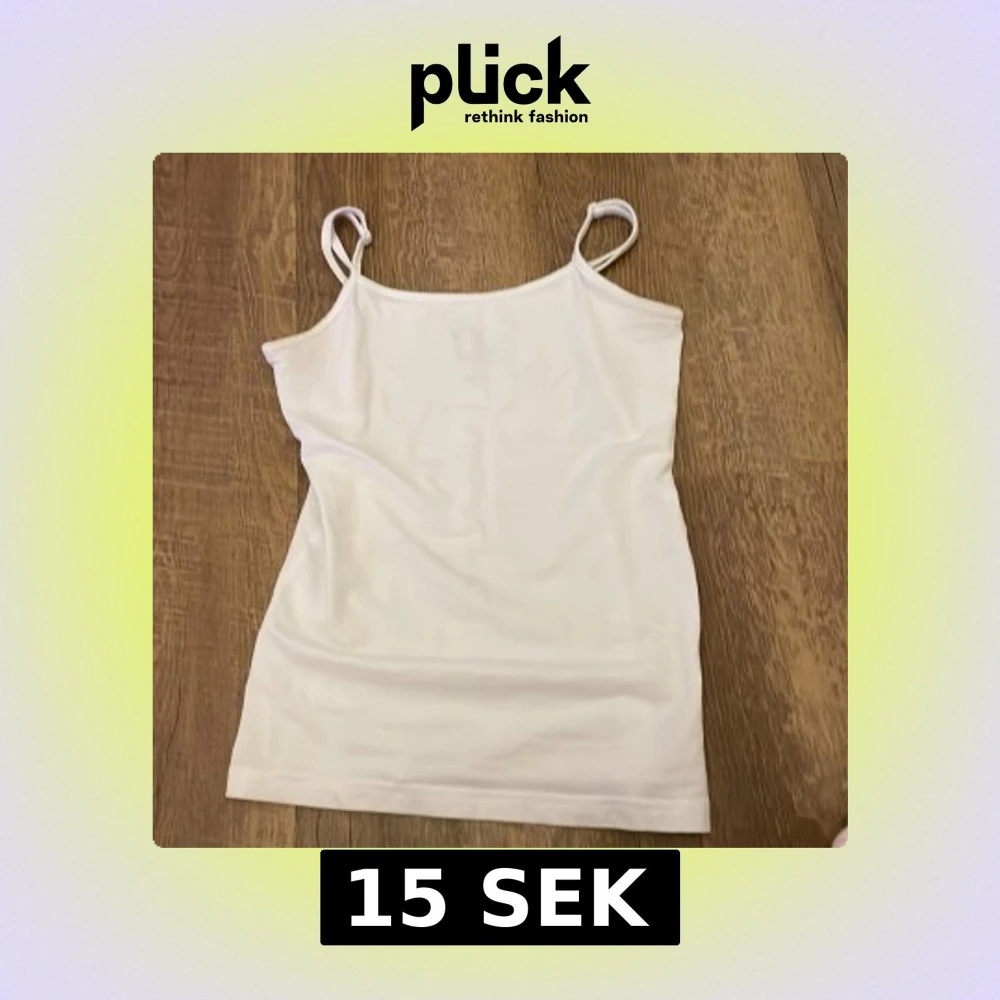 Säljer en enkel och fräsch vit linnetopp från Basic U med smala axelband och rak passform. Toppen är gjord i mjuk bomull och passar perfekt till varma dagar eller som layering-piece. Stilren och clean look som funkar till många outfits.