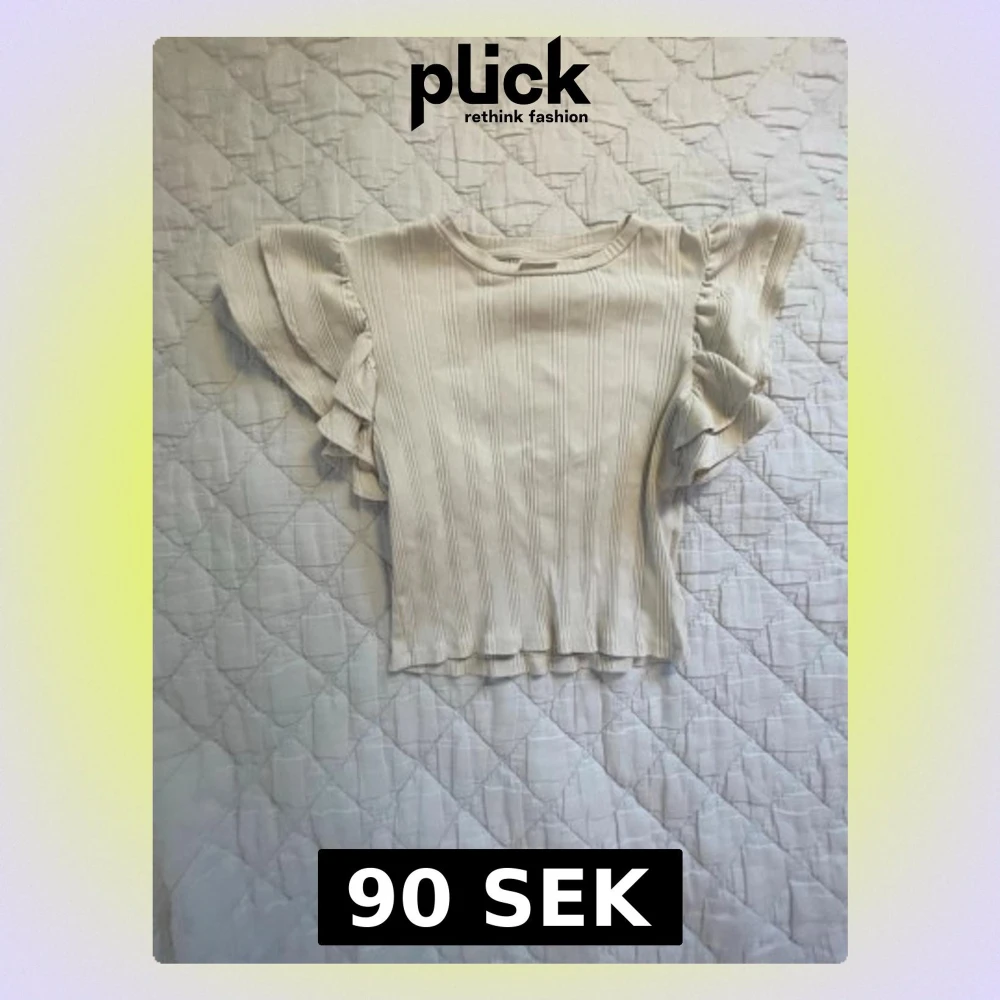 Supersöt topp med ribbat tyg och volangärmar.