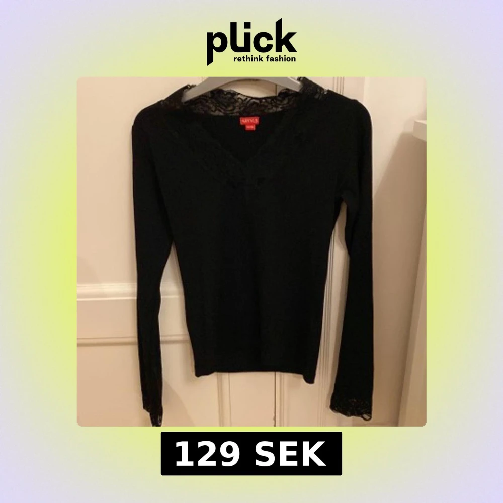 Svart långärmad topp från RYVLS med snygga spetsdetaljer vid halsringningen och ärmsluten. V-ringad och figurnära passform som ger en cool och elegant vibe. Perfekt för dig som gillar stilrena plagg med extra detaljer. Aldrig använd och säljer då den är för liten.