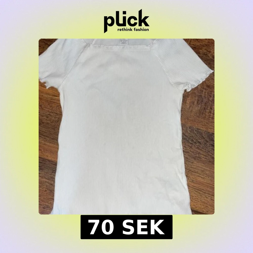 Säljer en enkel och stilren vit ribbad topp med korta ärmar och rund halsringning. Perfekt att matcha med jeans eller kjol för en clean look. Väldigt Stretchig