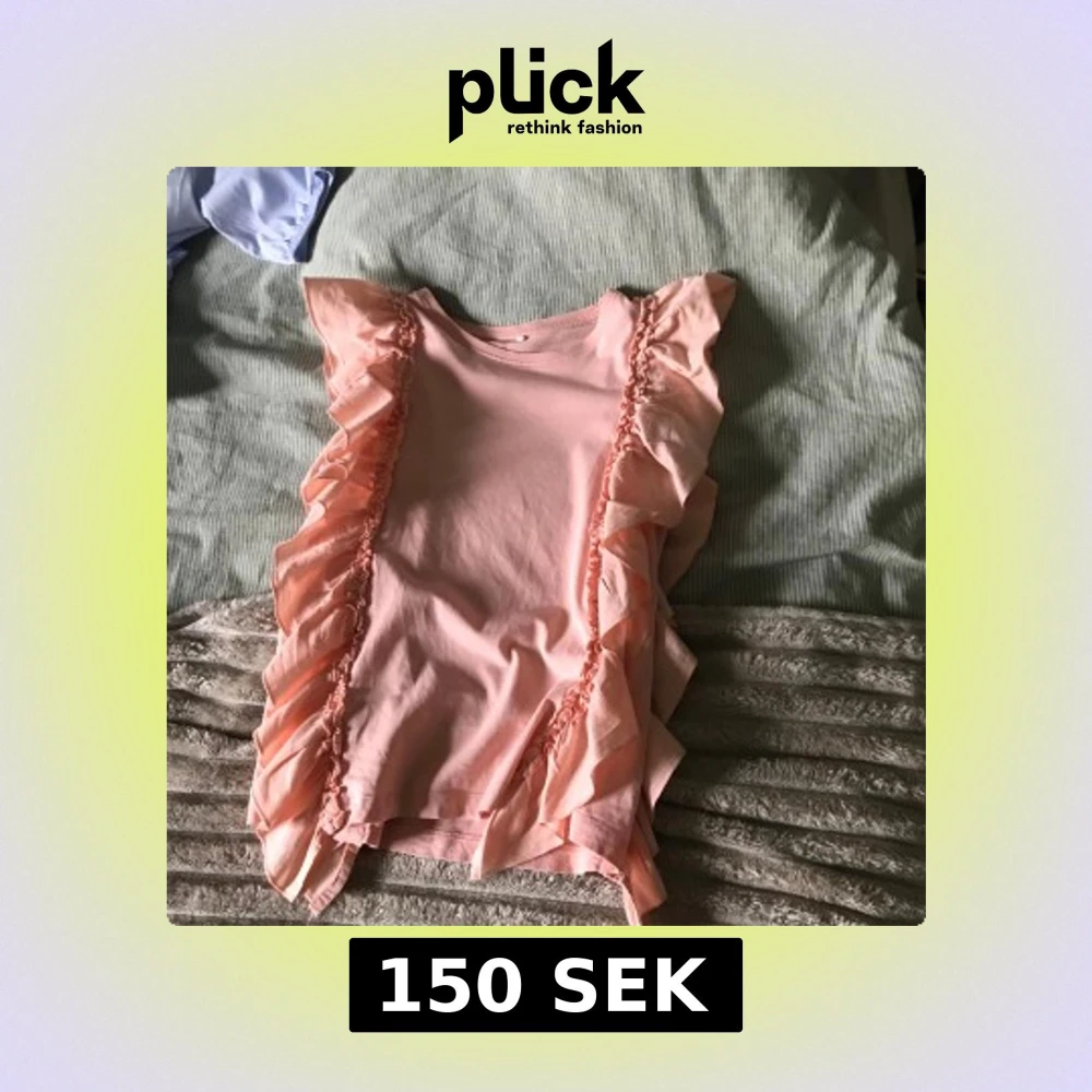 Supersöt ljusrosa blus med stora volanger längs sidorna och axlarna. Toppen har rund halsringning och är tillverkad i mjuk bomull, perfekt för dig som gillar en feminin och lekfull stil.