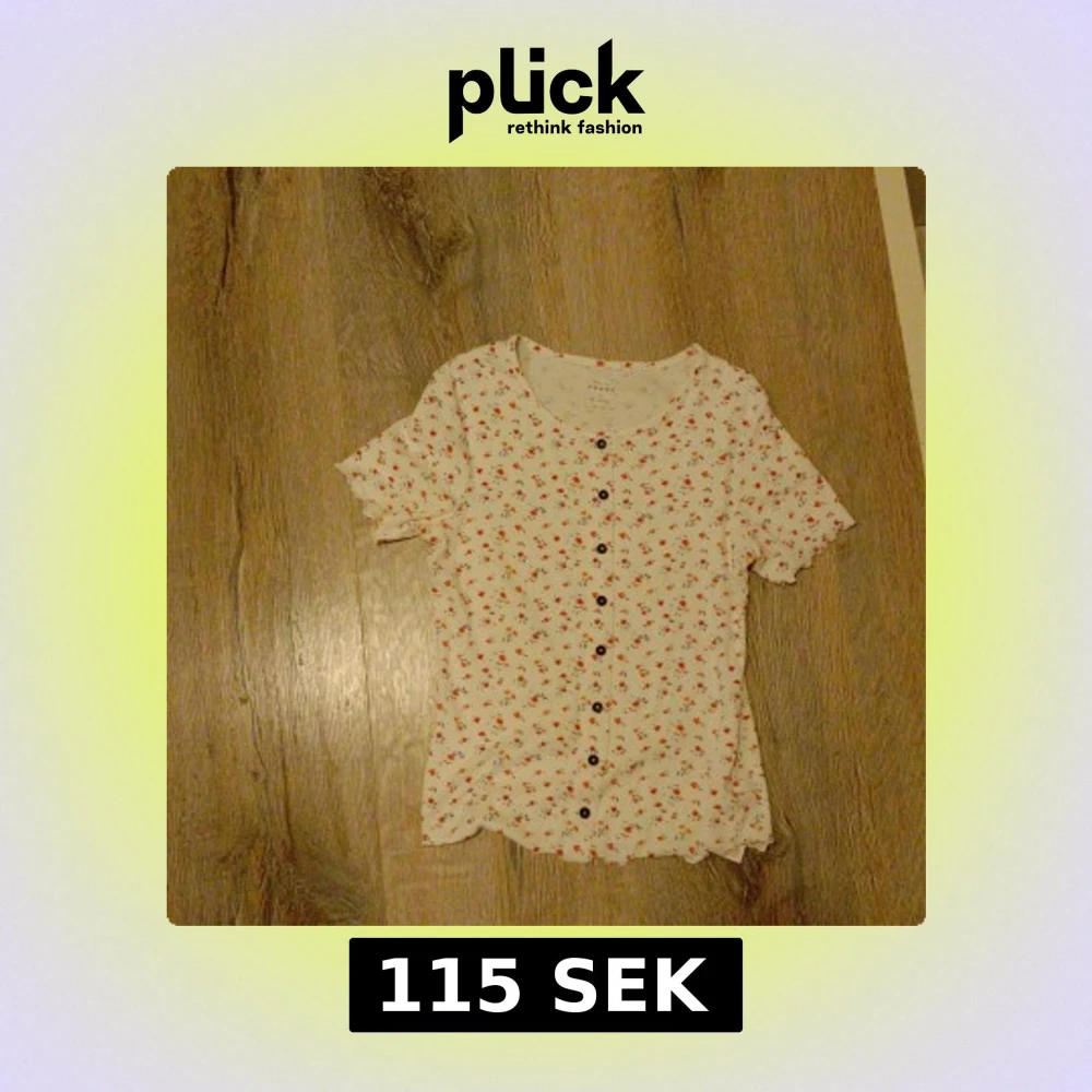 Supersöt blommig topp från basic needs med små röda och rosa blommor på vit botten. Toppen har korta ärmar, rund halsringning och svarta knappar framtill. Materialet är ribbat och stretchigt, perfekt för en chill och söt look. Priset går att diskuteras <333