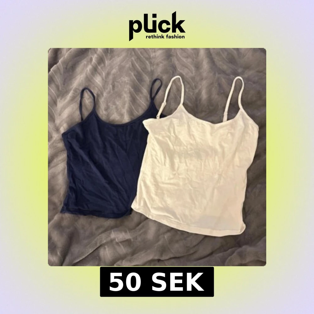 Två stilrena linnen från shein i storlek M, ett i marinblått och ett i vitt. Båda har smala axelband och ärmlös design, perfekta för att bygga lager eller bära som de är. Materialet är mjukt och lätt bomull, vilket gör dem sköna att ha på sig under varma dagar.