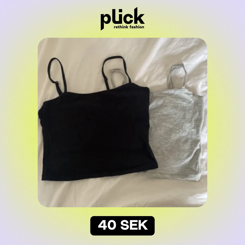Linne 2-pack, svart och grått, lite kortare i modellen i storlek S (sitter som xs/s). Oanvända så i mycket fint skick. Dom har tunna justerbara axelband (se bild 4). Dubbelt tyg vid bysten. Köparen betalar frakten!