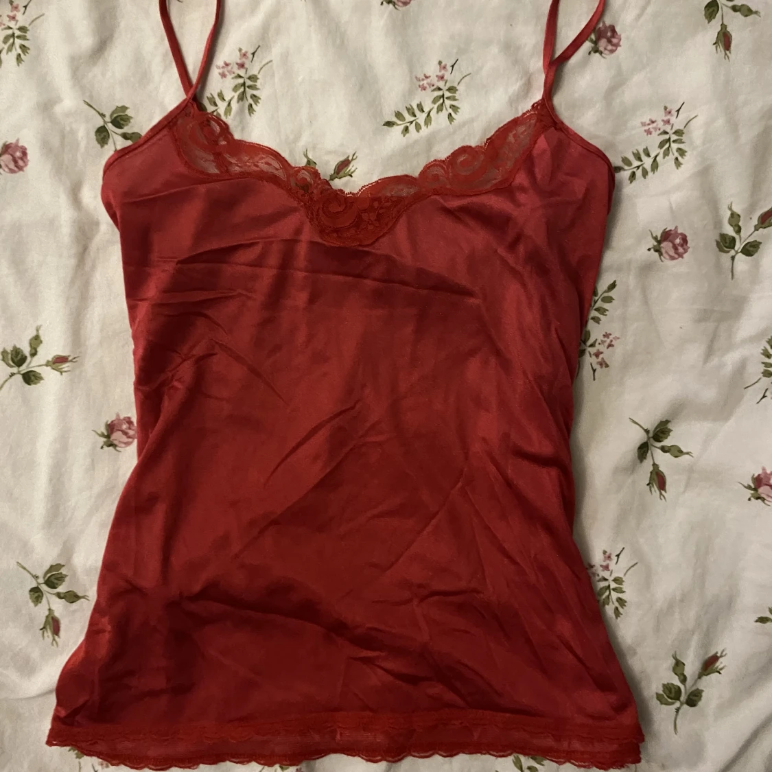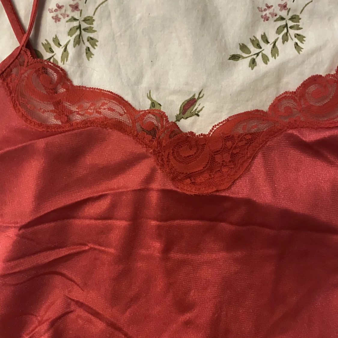 Ett rött spets linne som man kan använda till både att sova i och som ett vanligt plagg, skriv vid fler frågor 💕