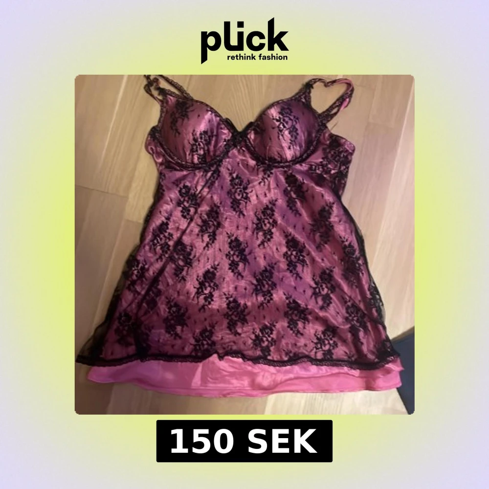 jätte fint rosa och svart linne i sill material med 2 lager. sitter löst och går att justera längden på strapsen