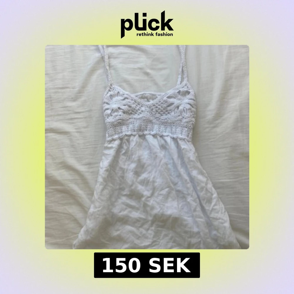 Söt vit linnetopp med virkade spetsdetaljer upptill och tunna axelband. Toppen har en luftig passform och är perfekt för varma dagar. Virkningen upptill har blommönster och ger en bohemisk känsla.