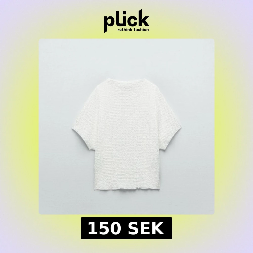 Säljer en vit topp från Zara med korta ärmar och en snygg strukturerad yta. Modellen är boxig och perfekt till jeans eller kjol. Kommer inte till användning💕