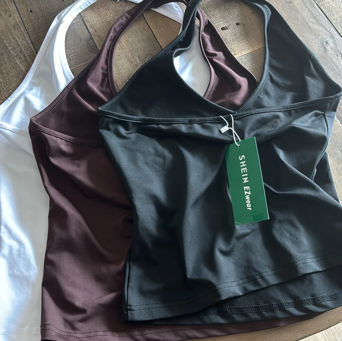 Säljer ett 3-pack linne toppar från Shein, vit, svart och brun. 50kr för alla tre