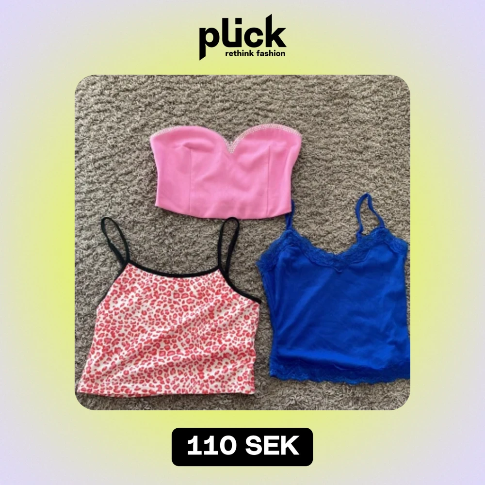 3 stycken färgglada toppar i storlek s. Alla skulle jag säga är i nyskick, det rosa leopardlinnet har tvättats ett par gånger då den är från SHEIN men är fortfarande i perfekt skick. Plaggen är från secondhand,shein.