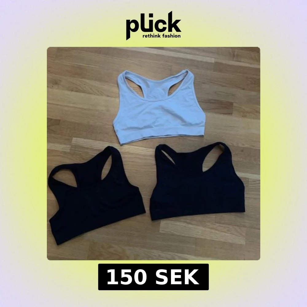 Säljer ett set med tre sporttoppar från Lindex i storlek 170, två svarta och en vit. Alla har brottarrygg och är tillverkade i stretchigt syntetmaterial som passar perfekt till träning. Otroligt mjuk och bekväm🤍