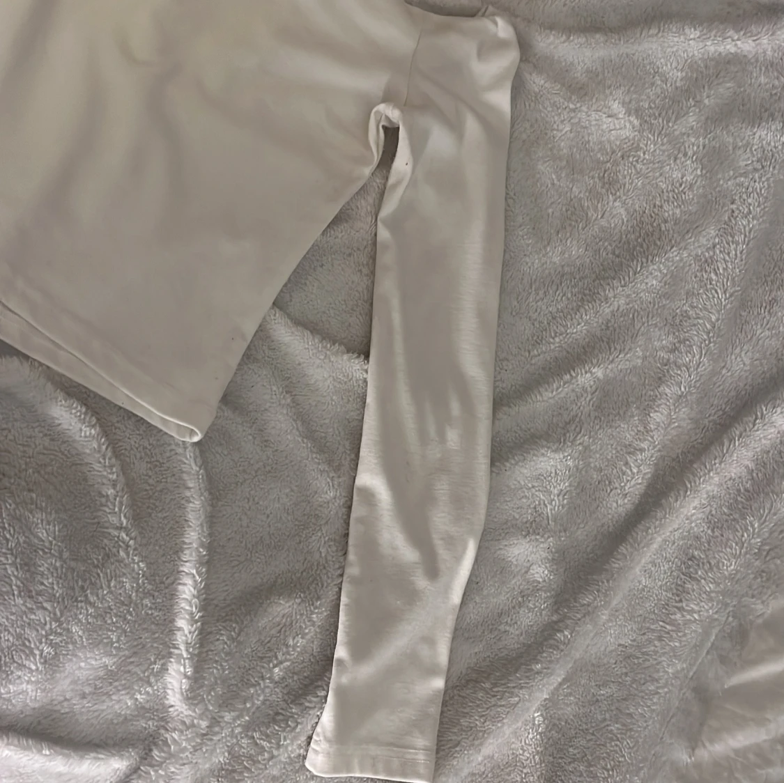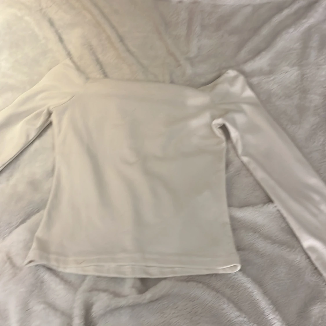 Säljer en vit offshoulder topp med långa ärmar. Nästan helt oanvänd. Storlek okänd. Märke okänd.