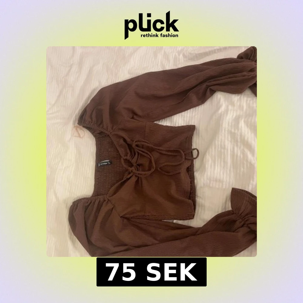 Säljer en brun croppad blus från neyworker med långa puffärmar och snygg snörning framtill. Toppen har en fyrkantig ringning och är gjord i ett lätt, strukturerat tyg som ger en trendig look. Perfekt att styla med höga jeans eller kjol.