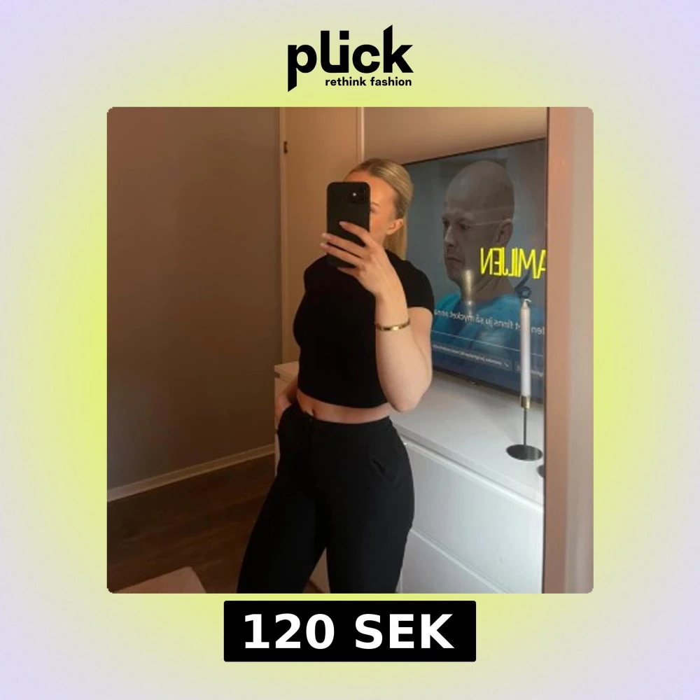 Snygg svart croppad t-shirt i ett tjockare material. Väldigt enkel och stilren så passar till det mesta. 💗