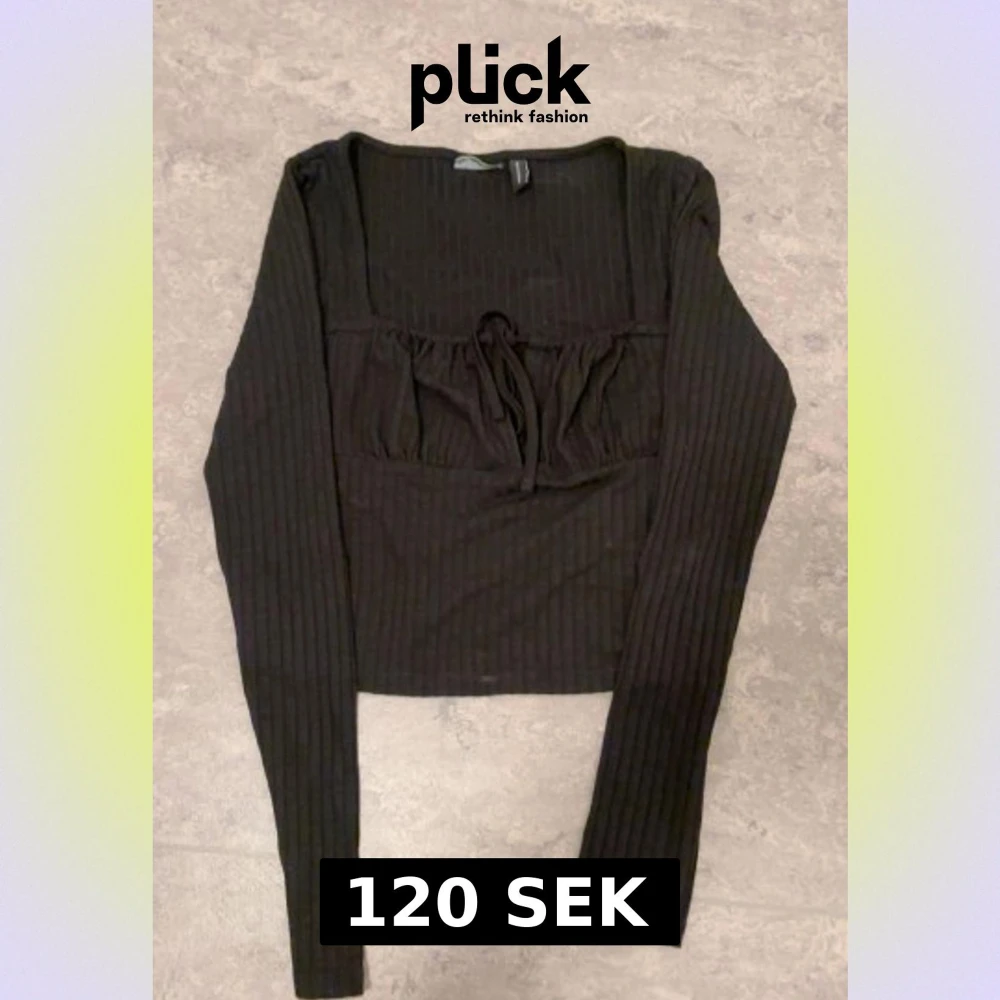 Svart ribbad långärmad topp med knyt