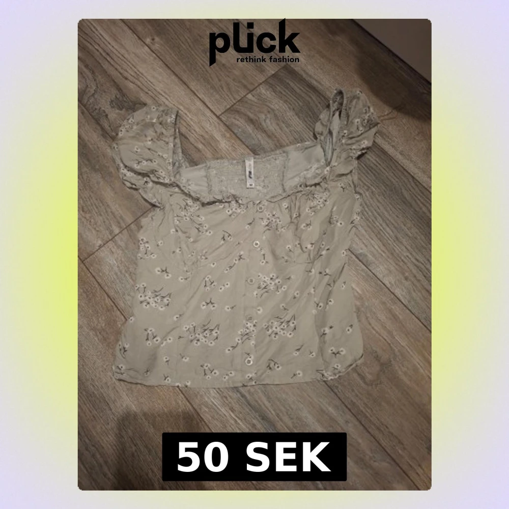 Säljer en ljusgrönblus från FB Sister i storlek M men passar för folk som också har xxs i storlek. Blusen har ett blommigt mönster med små vita och rosa blommor, puffiga korta ärmar och knappar framtill (går ej att öppna eller stänga)Smockad upptill och baktill för extra komfort och söt passform. Perfekt för vår och sommar!