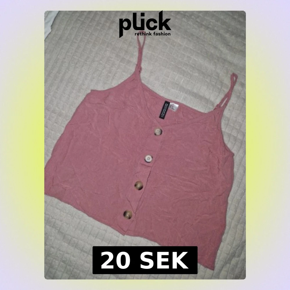 Söt rosa linnetopp från H&M Divided med smala axelband och dekorativa knappar framtill. Toppen har en croppad passform och är tillverkad i ett mjukt bomullsmaterial. Legat nerpackad därav skrynklig 🌞